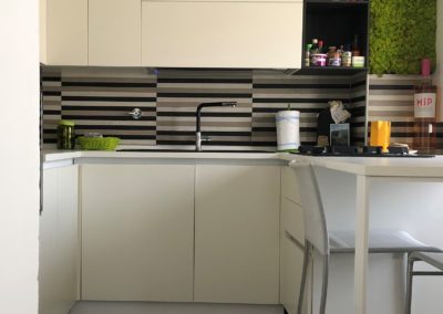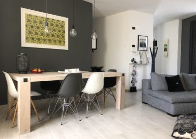 La ristrutturazione prevede la ridistribuzione degli spazi interni, posa nuovi pavimenti, realizzazione di un bagno di servizio e un bagno padronale adiacente alla camera, nuova cucina e soggiorno. Progettazione dell’arredo interno, studio dei colori, dei materiali e delle luci.
